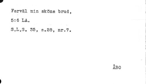 //// - * . * ' //// -- . < //// ) //// Farväl min sköna brud, //// 5:6 LA. //// S.L.S. 35, s.28, nr.7. //// - //// ! //// f //// t //// ! //// < //// i //// ÅBO //// - //// [ ////