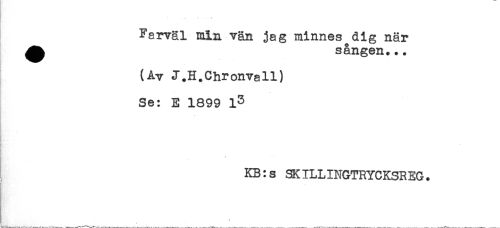//// Farväl min vän jag minnes dig när //// ^^ sången... //// (Av J.H.Chronvall) //// Se: E 1899 l3 //// t //// : //// F //// KB:s SKILLINGTRYCKSREG. ////