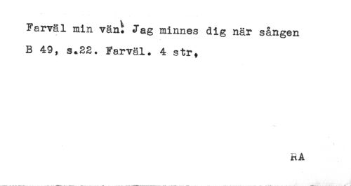 //// Farväl min vän^ Jag minnes dig när sången //// B 49, s.22. Farväl. 4 str, //// HA ////