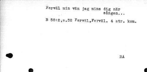 //// Farväl min vän jag mins dig när //// ! sången... //// B 58:2,s.32 Farväl,Farväl. 4 str. kom. //// ' <' ////