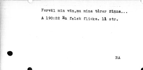 //// -- . -. *. //// Farväl min vän,nu mina tårar rinna... //// A 190:22 En falsk flicka. H str. //// RA ////