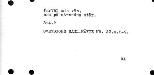 //// Farväl min vän, //// som pa stranden står. //// [ -- //// 8:4.? //// i //// SVENSSONS SÅI.IL. HÄFTE NR. 23.S.8-9. //// - //// . //// ) //// * //// RÅ //// ^ ^^^ - //// Hå ^HHHH^ ////