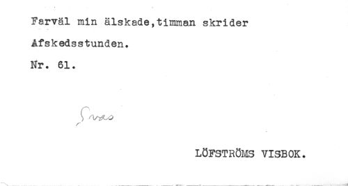 //// Farväl min älskade,timman skrider //// Åfskedsstunden. //// Nr. 61. //// LÖFSTRÖMS VISBOK. ////