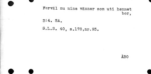 //// Farväl nu mina vänner som uti hemmet //// bor, //// 3:4. SA. //// L . _ //// S.L.S. 40, s.178,nr.93. //// ÅBO ////