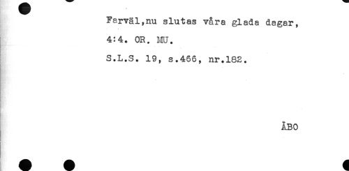 //// Farväl,nu slutas våra glada dagar, //// 4 //// 4:4. OR. MU. //// S.L.S. 19, s.466, nr.182. //// ÅBO ////