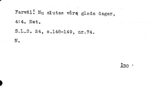 //// Farväl. Nu slutas våra glada dagar, //// 4:4. Net. //// * //// * * //// S.L.S. 24, s.148-149, nr.74. //// N. //// ÅBO * ////