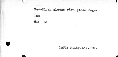 //// Fqrväl,nu slutas våra glada dagar //// 159 //// Hn * * //// LA5US NYL^FOLKV.REG. ////