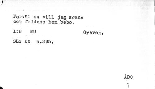 //// * ... //// ***** - //// Farväl nu vill jag somna //// och fridens hem bebo. //// * //// 1:8 MU Graven. //// T //// SLS 22 s.395. //// * //// - //// < //// f //// : //// ÅBO ////