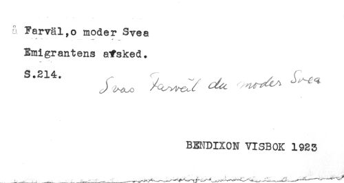 //// & Farväl,o moder Svea //// Emigrantens afsked. //// t //// BEMDIXON VISBOK 1925 ////