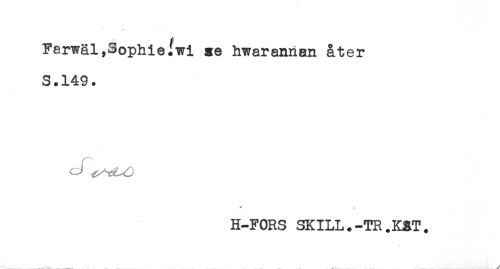 //// Farwäl,Sophieiwi se hwarannan åter //// S.149. //// H-FORS SKILL.-TR.K&T. ////
