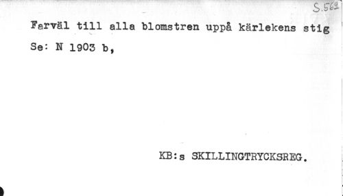 //// Farväl till alla blomstren uppå kärlekens stig ' //// Se: N 1903 b, //// KB: s SKILLINGTRYCKSREG. ////