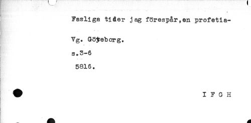 //// ** //// *" .... ** ^ * - - * - _ _ //// Fasliga tiåer jag förespår,en profetia- //// Vg. Göteborg. //// s.3-6 //// 5816. //// # I F G H ////