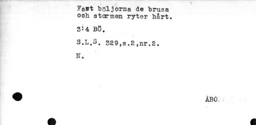 //// Fast böljorna de brusa //// och stormen ryter hårt. //// * //// 3:4 BÖ. //// S.L.S. 329,s.2,nr.2. //// N. //// ^ ÅBO ////