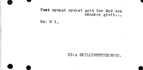 //// Fawt mycket mycket gott har Gud oss //// mänskor givit... //// Se: R 1, //// * //// KB:s SKILLINGTRYCKSREG. ////
