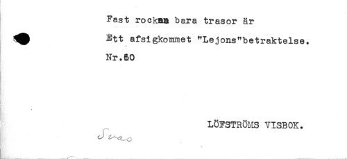 //// Fast rockan bara trasor är //// Ett afsigkommet "Lejons"betraktelse. //// * * # //// Nr.60 //// \ //// LÖFSTRÖMS VISBOK. ////