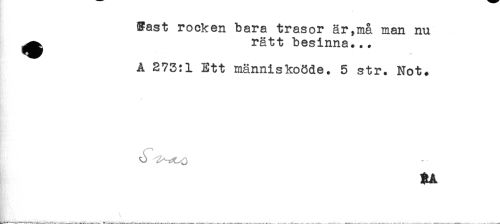 //// Tast rocken bara trasor är,ma man nu //// ^^ rätt besinna... //// Å 273:1 Ett människoöde. 5 str. Not. //// s ////