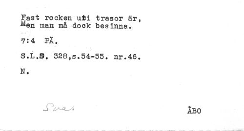 //// Fast rocken ui?i trasor är, //// ^en man må dock besinna. //// 7:4 pÅ. //// S.L.S. 328,s.54-55. nr.46. //// N. //// -J ÅBO ////