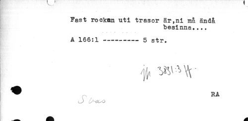 //// A'"' //// 2 ' ' : * //// I //// HBR''..'* _. . //// Fast rockan uti trasor är,ni må ändå //// besinna..*. //// - T , r , , //// A 166:1---5 str. //// ( //// ^ RA //// ____' ////