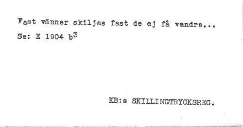 //// Fast vänner skiljas fast de ej få vandra... //// ! ] //// Se: E 1904 //// KB:s SKILLINGTRYCKSREG. ////