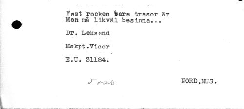 //// Fast rocken bara trasor är //// ^ Man må likväl besinna... //// Dr. Leksand //// -vy - . . -. * //// ! Ms kpt .Visor //// E.U. 31184. //// ! //// i //// J NORD.MUS. ////