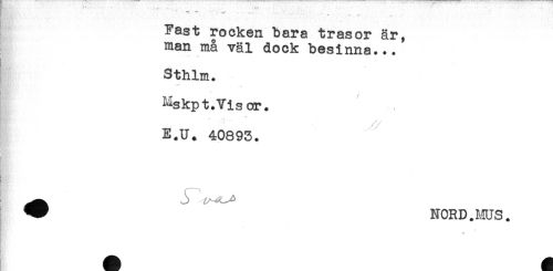 //// * * -- ^ //// Fast rocken bara trasor är, //// nan må väl dock besinna... //// Sthlm. //// Mskpt.Visor. //// ^ * //// E.U. 40893. //// ^ NORD.MUS. ////