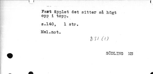 //// Fast äpplet det sitter så högt //// opp i topp. //// s.140, 1 str. //// Mel.not. //// ^ SÖDLING MS ////
