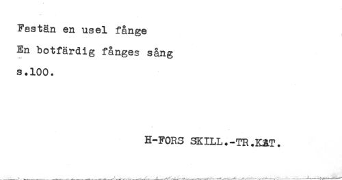 //// Fastän en usel fånge //// En botfärdig fånges sång //// s.100. //// H-FORS SKILL.-TR.KRT. ////