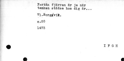 //// Fastän fjärran är ja när //// tanken städse hos dig är... //// 3** - -- //// Vl.Borg^viR. //// s.20 //// 1473 //// ^ I F G H //// A ^ ////