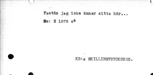 //// '**<* **** *- - -^ //// ' Fastän jag icke ämnar sitta här... //// ^ Se: E 1876 c4 //// **** //// * KB:s SKILLINGTRYCKSREG. ////