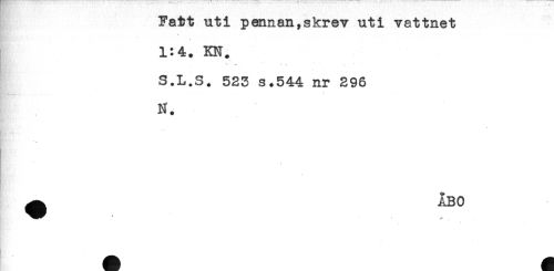 //// Fatt uti pennan,skrev uti vattnet //// 1:4. KN. //// * //// - . * - - . "* ' //// S.L.S. 523 s.544 nr 296 //// N. //// < //// ^ ÅBO ////