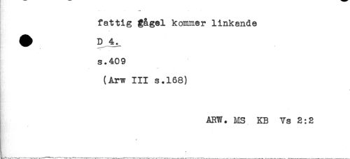 //// - //// fattig gågel kommer linkande //// s.409 //// (Arw III s.168) //// ARW. MS KB Vs 2:2 //// f ////