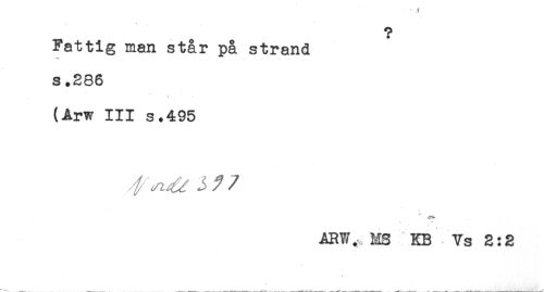 //// ? //// Fattig man står på strand //// s .286 //// (Arw III s.495 //// / J / //// /4 * //// ARW., US KB Vs 2:2 ////