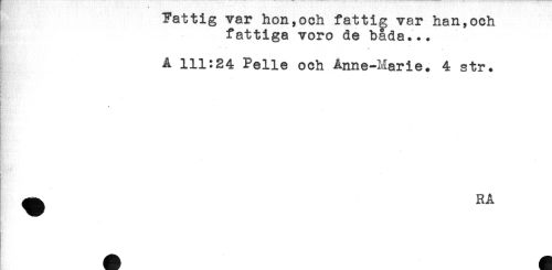 //// Fattig var hon,och fattig var han,och //// fattiga voro de bada... //// t //// A 111:24 Pelle och Anne-Marie. 4 str. //// i //// anm //// i //// ! //// t* //// T* //// <! * //// t)}: //// C? i' //// [ //// ^ RA //// B ////