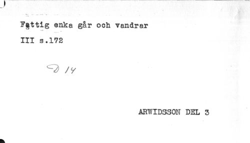//// F§ttig enka går och vandrar //// t' //// III s.172 //// ARWIDSSON DEL 3 //// < ////