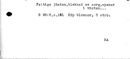 //// Fattiga jäntan,bleknad av sorg,spanar //// i väntan... //// * * //// ^ B 95:3,s.161 K8p blommor, 3 str§. //// RA //// * ////