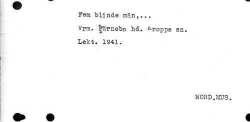 //// Fem blinde män,... //// Hr //// Vrm. Färnebo hd. ^roppa sn. //// * //// Lekt* 1941. //// t //// NORD.MUS. ////
