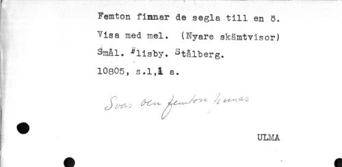 //// Femton finnar de segla till en ö. //// Visa med mel. (Nyare skämtvisor) //// Smål. *lisby. Stålberg. //// 10805, s.1,3, a. //// I ^ ULMA //// ] ////