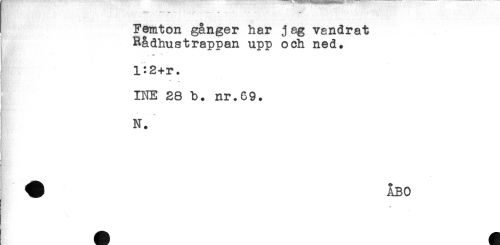 //// Femton gånger har j ag vandrat //// Rådhustrappan upp och ned. //// ** //// i:2+r. //// ** - //// INE 28 b. nr.69. //// N. //// i' //// t! //// * ////