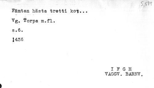 //// Fämtan hästa tretti kcrp... //// Vg. Torpa m.fl. //// s .6. //// j //// i436 //// I F G H //// VAGGV. B ARNY. ////