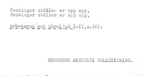 //// Fes-tingar stäHer er opp opp, //// festingar ställer er opp opp, //// -i * //// -t , * *-. ... - .<- //// Arbetsro^ och härmljud_I-II^ s.265. //// REHNBERG ARBETETS FOLKDIKTNING. ////
