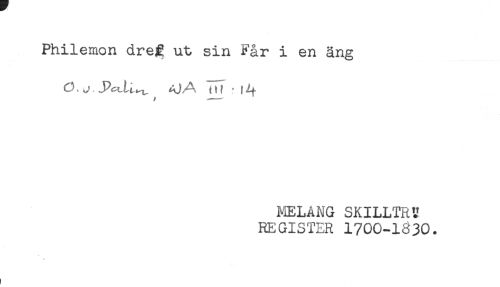 //// Philemon dreg ut sin Får i en äng //// O, j .PctLt.^, ^ A ' t //// MELANG SKILLTRV //// REGISTER 1700-1^30. ////