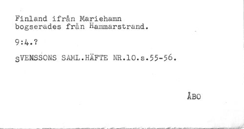 //// Finland ifrån Mariehamn //// bogserades från Hammarstrand. //// t //// [ //// 9:4.? //// SVENSSONS SAML.HÄFTE NR.10.s.55-56. //// ÅBO //// * ////