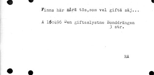 //// ?inns här iiårä tös,som vel giftä säj... //// . //// , * .... ... //// t //// A 1$:496 ^en giftaslystne Bonddrängen //// 3 str. //// * //// RA ////