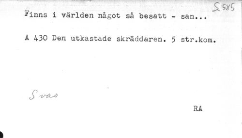 //// *inns i världen något så besatt - san... //// A 430 Den utkastade skräddaren. 5 str.kom. //// * //// w //// RA ////