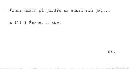 //// Finns någon på jorden så ensam som jag... //// Å 111:1 Énsam. 4 str. //// RA. ////
