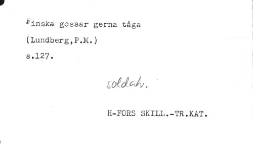 //// { //// ^inska gossar gerna tåga //// (Lundberg,P.M.) //// s.127. //// ) //// H-FORS SKILL.-TR.KAT. ////