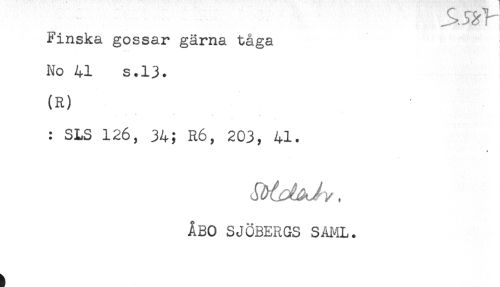 //// Finska gossar gärna tåga //// No 41 s.13. //// (R) //// : SLS 126, 34; R6, 203, 41. //// ÅBO SJÖBERGS SAML. ////