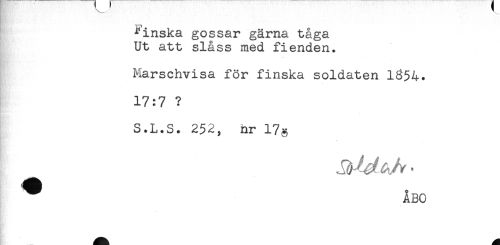 //// ^inska gossar gärna tåga //// Ut att slåss med fienden. //// Marschvisa för finska soldaten 1^54. //// 17:7 ? //// S.L.S. 252, nr 17g //// ^ ÅBO ////