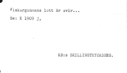 //// ) //// fiskargummans lott är svår... //// - j //// Se: E 1909 j, //// I //// * //// KB:s SKILLINGTRYCKSREG. ////