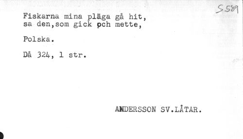 //// Fiskarna mina pläga gå hit, //// sa den,som gick pch mette, //// ! //// Polska. //// . //// * //// Då 324, 1 str. //// ANDERSSON SV.LÅTAR. ////